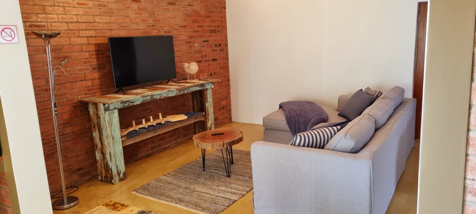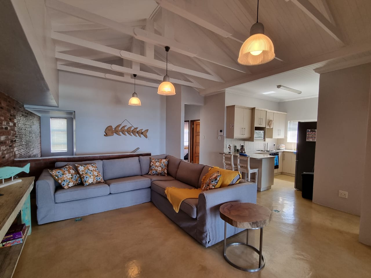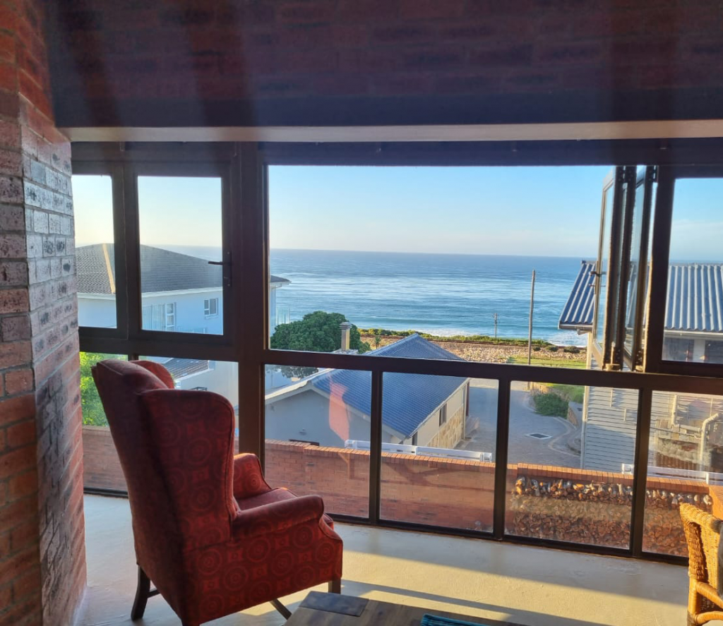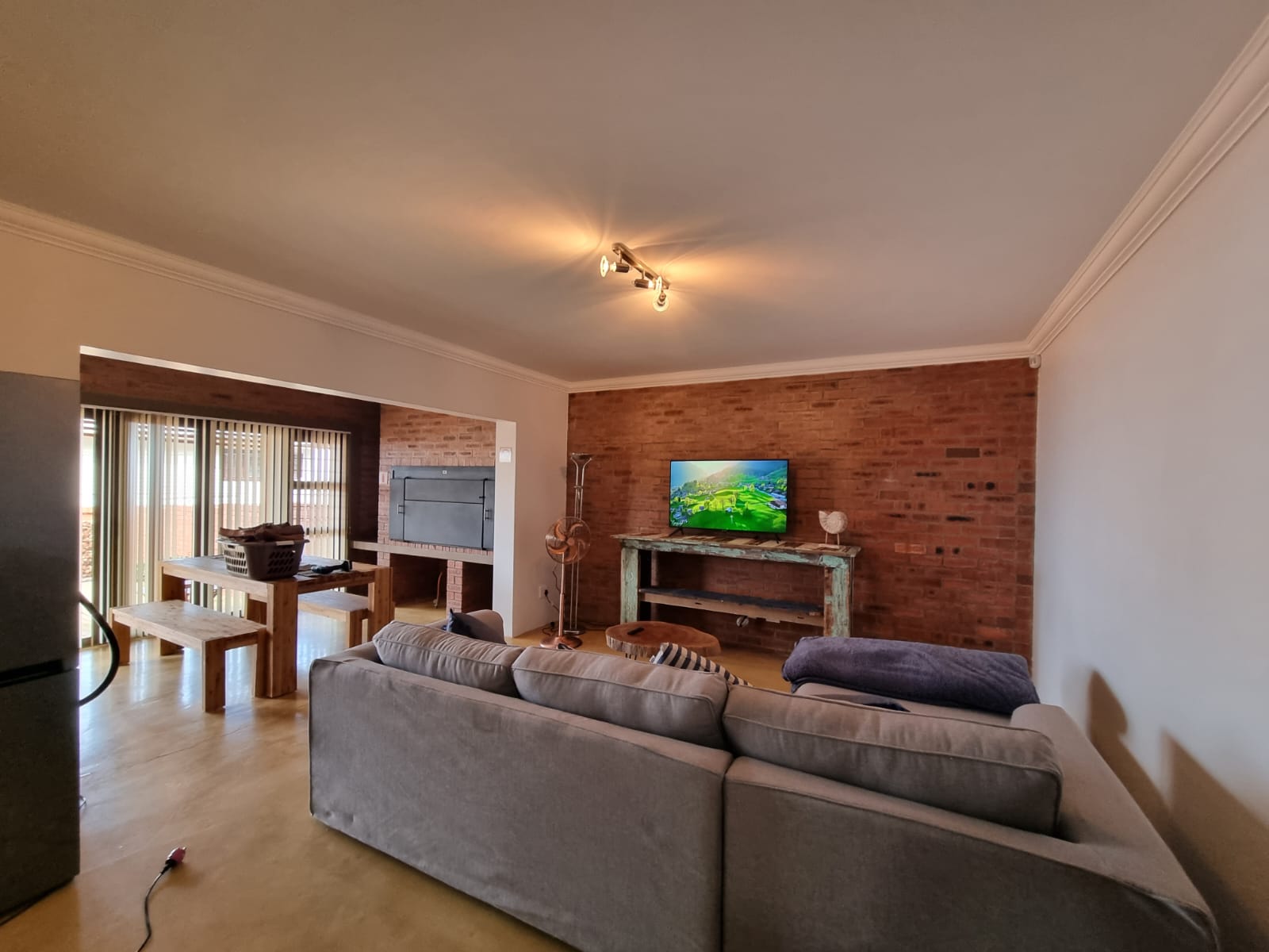 Eenheid 1 bied slaapplek aan 6 gaste en beskik oor 3 slaapkamers en 2 badkamers. Die kuierarea het ‘n lieflike etenstafel, braaigeriewe en ‘n see-uitsig in die agtergrond.