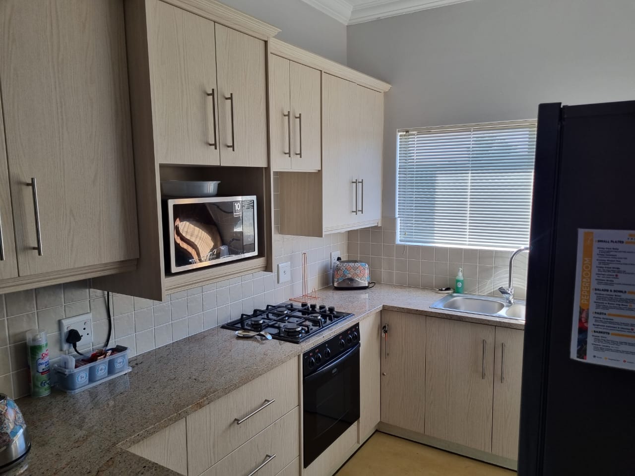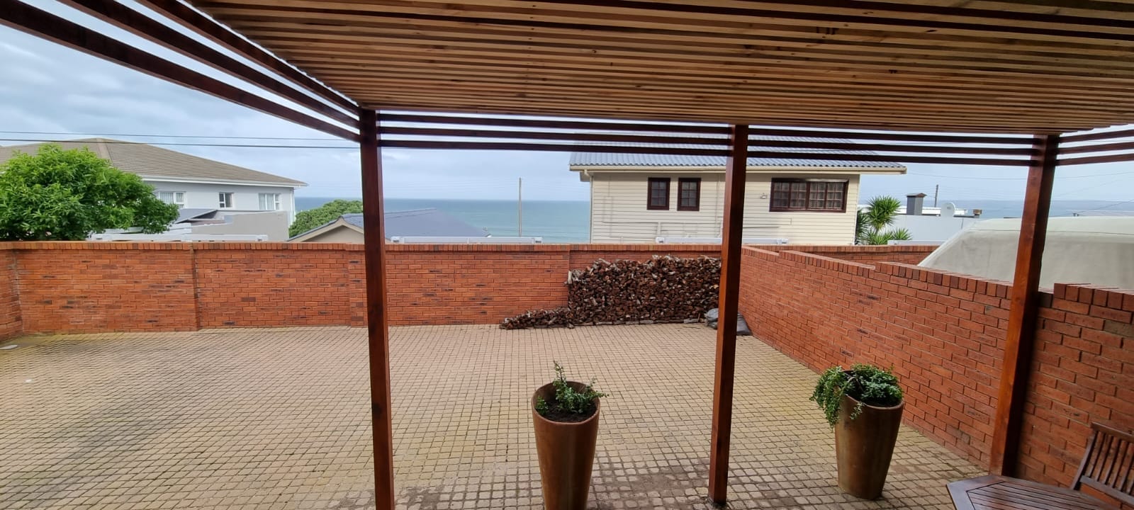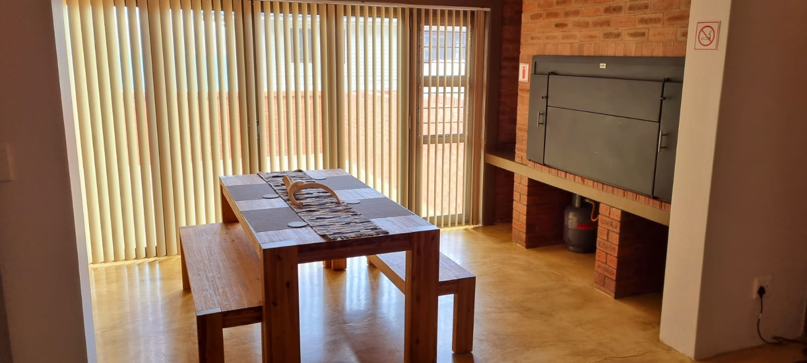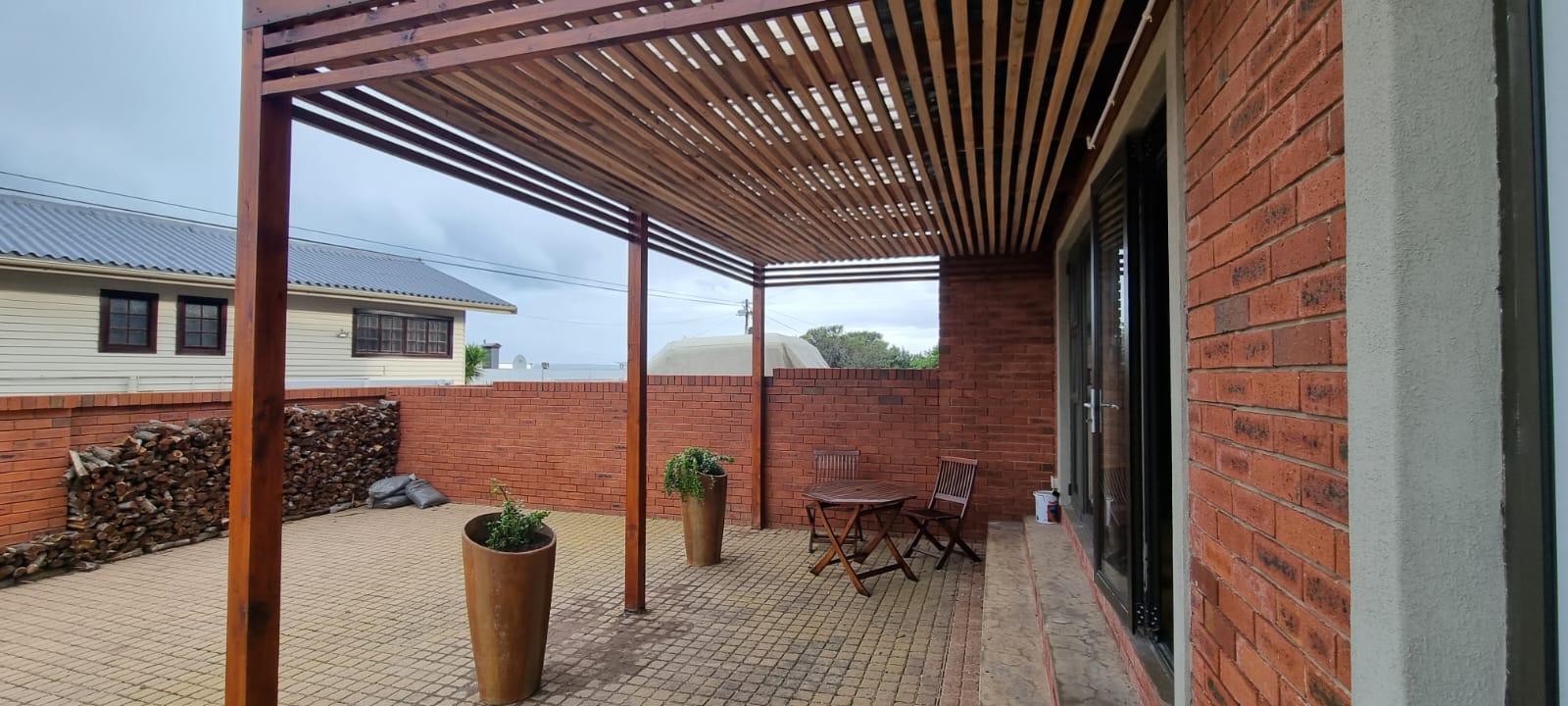 Eenheid 1 bied slaapplek aan 6 gaste en beskik oor 3 slaapkamers en 2 badkamers. Die kuierarea het ‘n lieflike etenstafel, braaigeriewe en ‘n see-uitsig in die agtergrond.